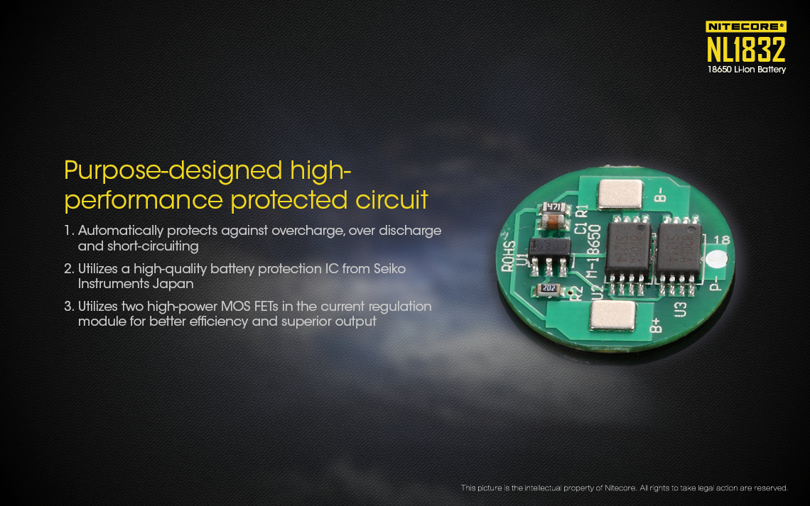 Эта литий-ионная аккумуляторная батарея 18650 емкостью 3,7 В, 3200 мАч от Nitecore была специально разработана для использования в устройствах с высоким энергопотреблением и имеет встроенную схему защиты от перезарядки и переразряда, которая снижает риск повреждения аккумулятора. Его положительный вывод представляет собой обычную «кнопочную» конфигурацию, совместимую с большинством устройств.