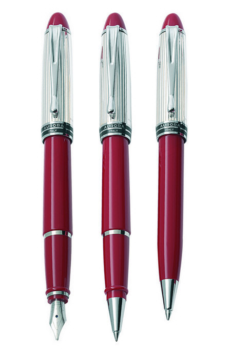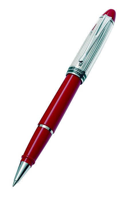 Корпус: колпачок - стерлинговое серебро, баррель - акриловая смола Отделка:продольное гильоше, на кольце колпачка имеется глубокая гравировка логотипа "Aurora" и "ITALY",отдельные элементы дизайна - зеркальный хром и красный лак