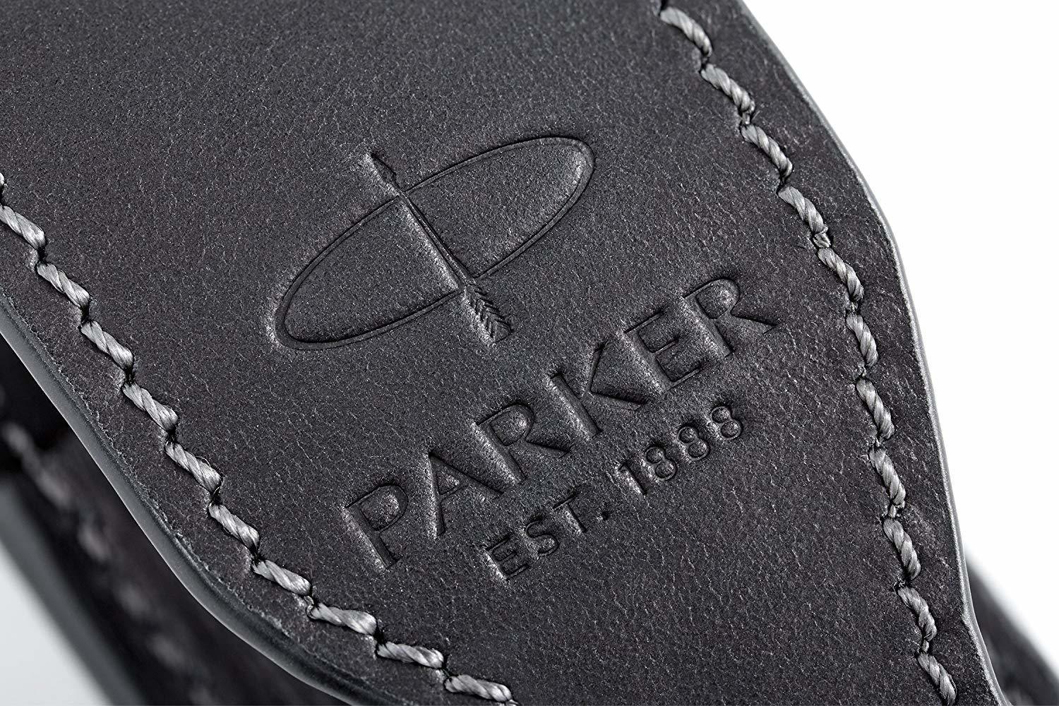 Отделка: прошит фактурной нитью серебристо-серого цвета, тиснение логотипа компании Parker.