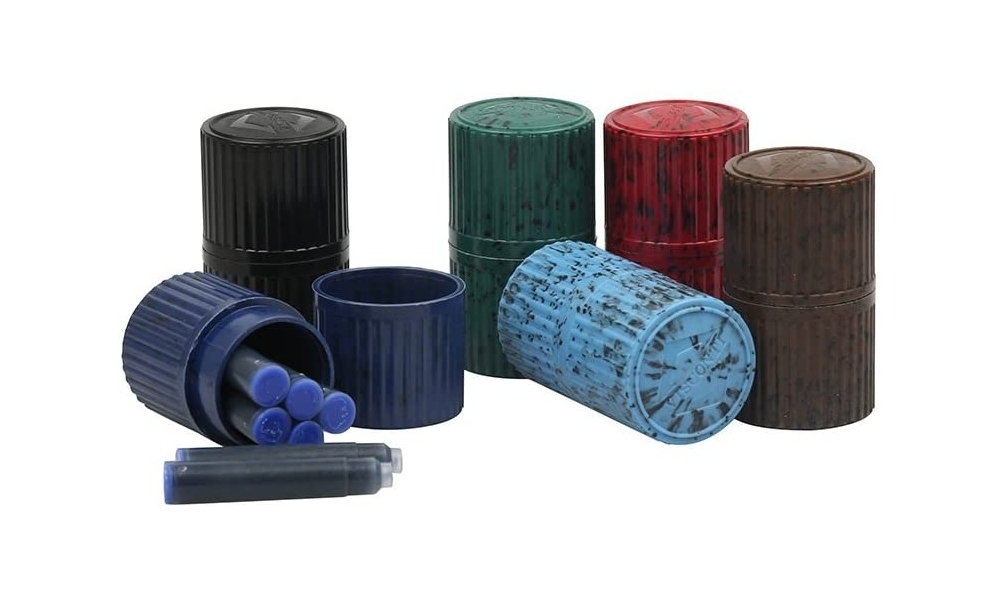 Фирменные чернила Visconti поставляются в стильных флаконах из ударопрочного пластика. Коллекция чернил состоит из 6 цветов. Инновационная форма флакона с узким дном позволяет с легкостью использовать его содержимое до последней капли. Объем флакона – 60 ml.