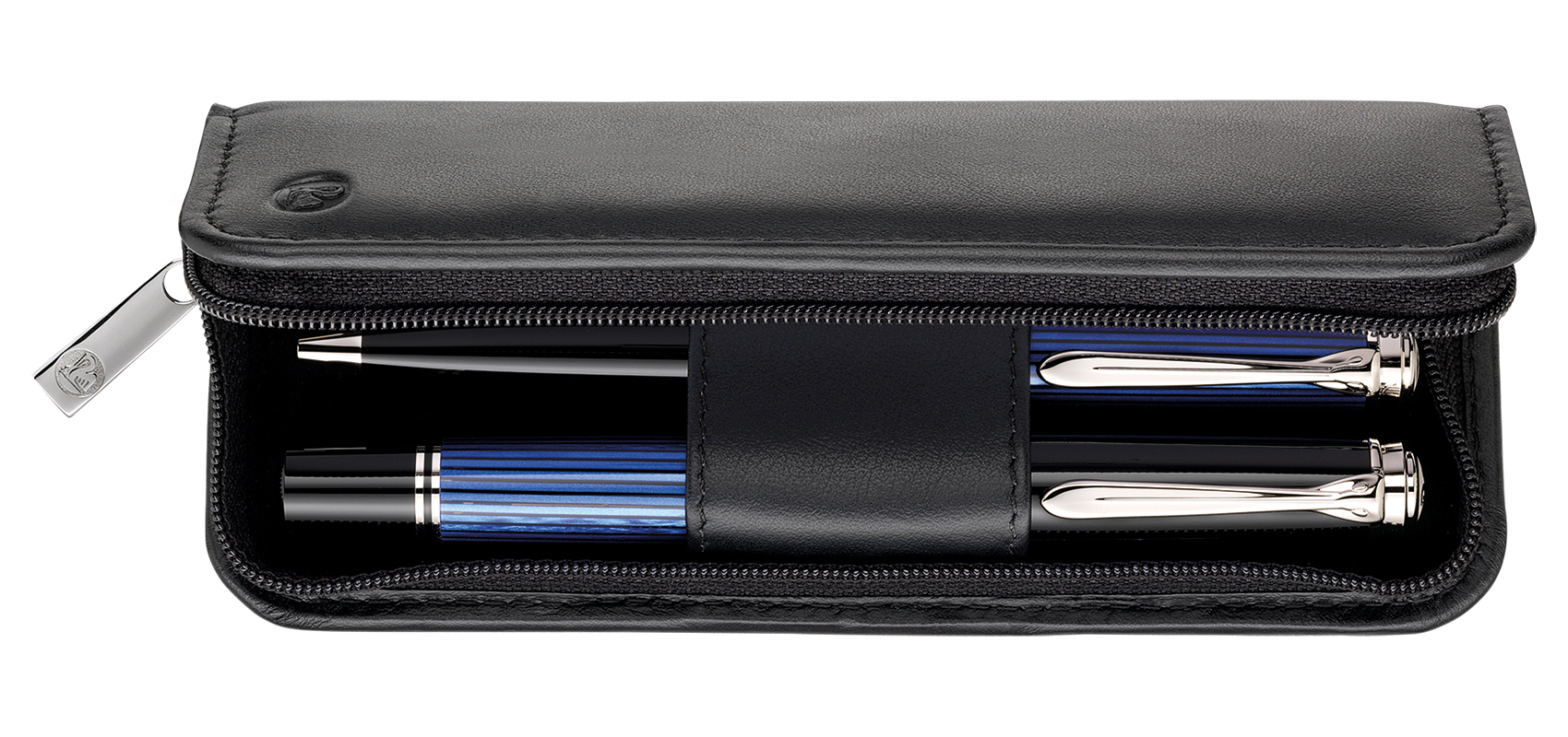 Высококачественный футляр для двух ручек от немецкого бренда Pelikan. Чехол выполнен из натуральной кожи с гладкой отделкой и веллюровым эффектом Nappa, очень приятным на ощупь. Оснащается удобным замком на молнии, каждая ручка надежно крепится индивидуальным держателем.