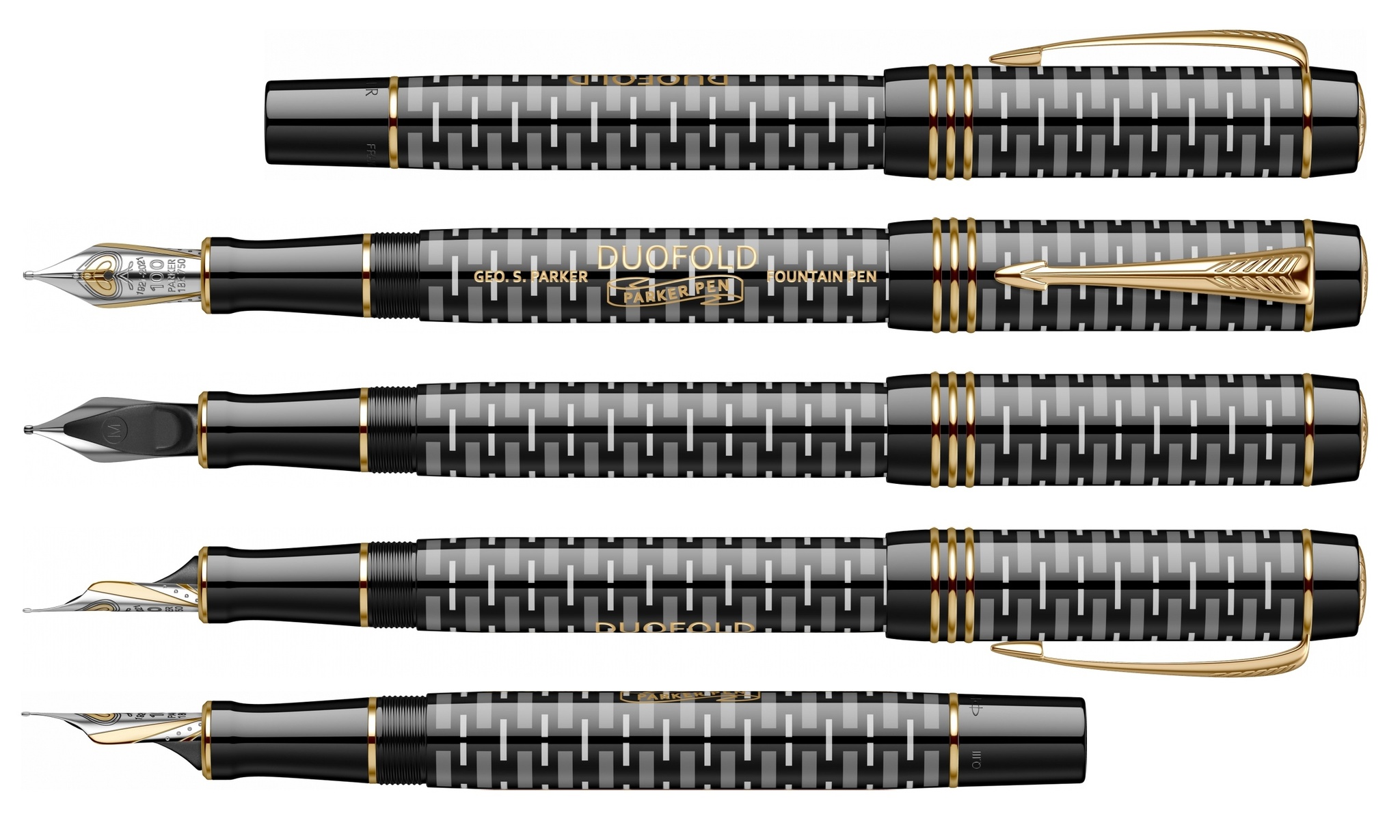Дизайн всех трех ручек был вдохновлен оригинальными ручками 1921 и 1927 годов: Big Red (1921), Black (1921) и Lapis Lazuli (1927). Паркер начал производить Duofold из пластика в 1920-х годах. Пластик имел ряд преимуществ перед твердой резиной, которую он заменил. Он был прочнее и мог быть разных цветов. Паркер начал экспериментировать с Duofold, соединяя вместе пластмассы разного цвета, чтобы получить чередующиеся цветные полосы. Anniversary Edition черпает вдохновение в этих ранних экспериментах, аккуратно сплавив вместе несколько тонких слоев драгоценной смолы, чтобы сформировать сложный узор на крышке и корпусе. Каждая ручка состоит из трех драгоценных смол, и, хотя сегодня они изготавливаются по разному процессу, каждая смола тщательно отбирается для создания чередующихся цветных полос, что является явным намеком на те ранние эксперименты.