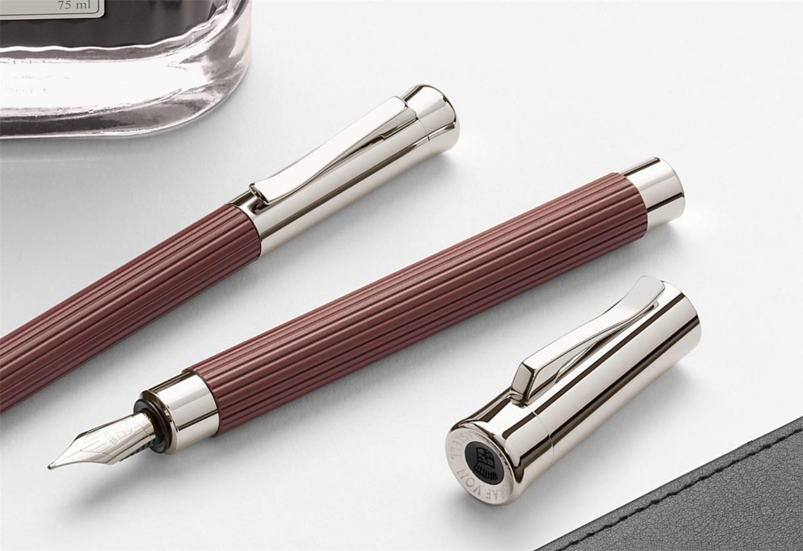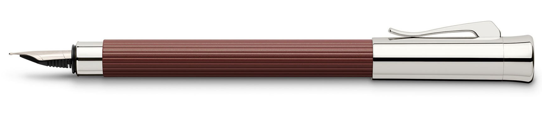 Рифленый корпус перьевой ручки Graf von Faber-Castell Tamitio Marsala сделан из металла, отполированного в несколько шагов. Инновационный лак насыщенного коричневого цвета, покрывающий поверхность, обеспечивает стойкий матовый эффект. До совершенства можно не только дотронуться, его можно увидеть! Каждая Ручка перьевая серии Tamitio Marsala - отражение элегантности, а также одновременно привлекательный и стильный пишущий инструмент, изготовленный в Германии.