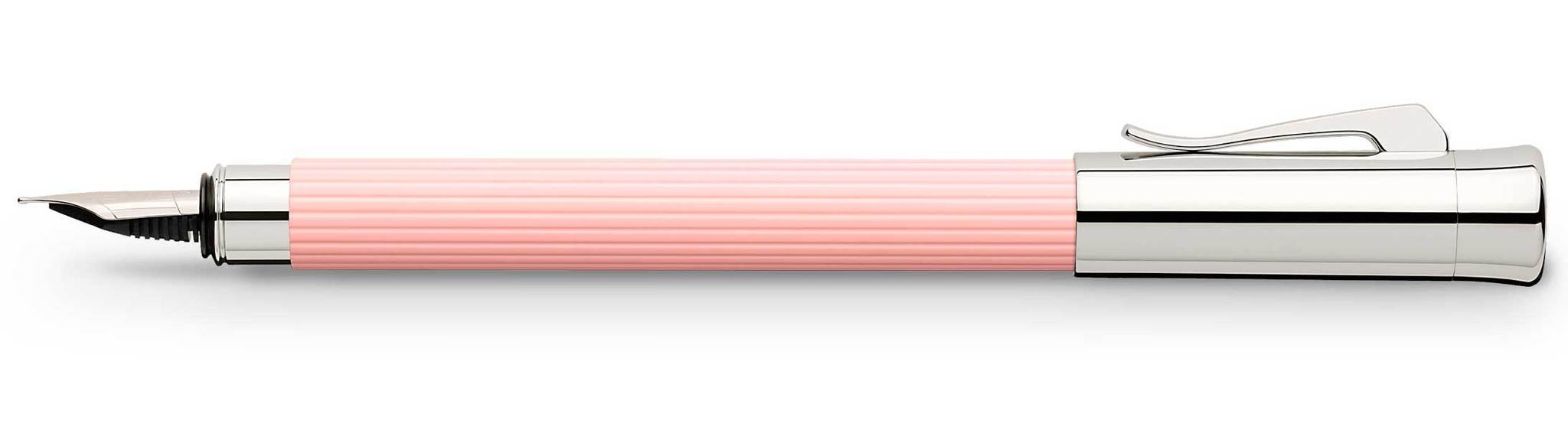 Тонкий металлический корпус перьевой ручки Graf von Faber-Castell Tamitio Rose - образчик стильного удовольствия от письма, это как прекрасная игра на флейте. Поверхность корпуса ручки – следствие досконального мастерства: применение технически инновационного лака нежного розового цвета, созданного именно для серии Tamitio Rose, который придает глубокий и благородный матовый оттенок. Многократно полированные зона захвата и торец, а также гравировка "Handmade in Germany" придают перьевой ручке серии Tamitio Rose благородство и превосходное качество исполнения.