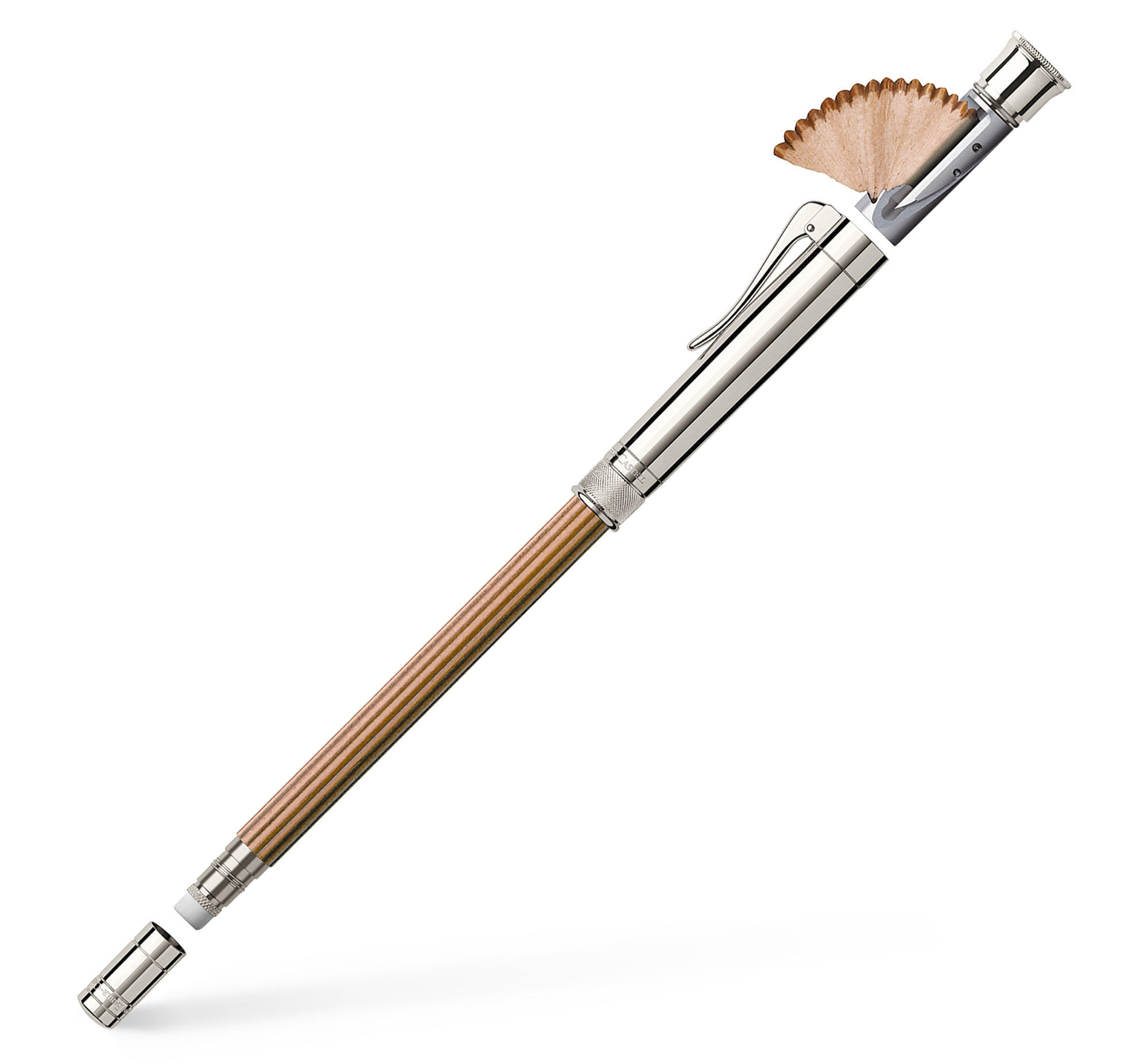 Кульминационной точкой в истории Карандаша по праву считается рождение «Идеального карандаша» от Graf von Faber-Castell. Истинное наслаждение от письма и художественных набросков может подарить лишь остро заточенный инструмент. Но где хранить точилку? Согласитесь, самое лучшее место для этого - сам карандаш! Поэтому, чтобы точилка всегда была под рукой, ее вмонтировали в специальную насадку-колпачок, как у ручки. Экстендер карандаша со встроенной точилкой и сменным ластиком под колпачком занимает особое место в производстве бренда. Вам потребуется минимум пространства, времени и усилий на то, чтобы написать, исправить и подточить, поскольку все необходимое находится под рукой. Экстендер, покрытый платиной, - идеальное дополнение самого карандаша!