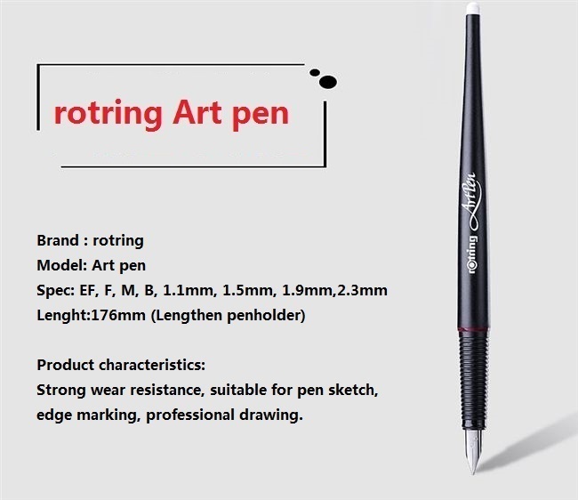 После длительного прерыва компанияRotringвозобновила выпуск легендарной моделиRotring ArtPen. РучкаRrotring Artpenбыла необычайно популярна в течение многих лет и фактически уникальна как инструмент для рисования в форме авторучки, который использует обычные чернильные картриджи. Огромное количество художников и дизайнеров любят использовать традиционные стальные перья для рисования эскизов и надписей.Rotring ArtPen предлагает высококачественные перья с простотой в употребления в виде авторучки.
