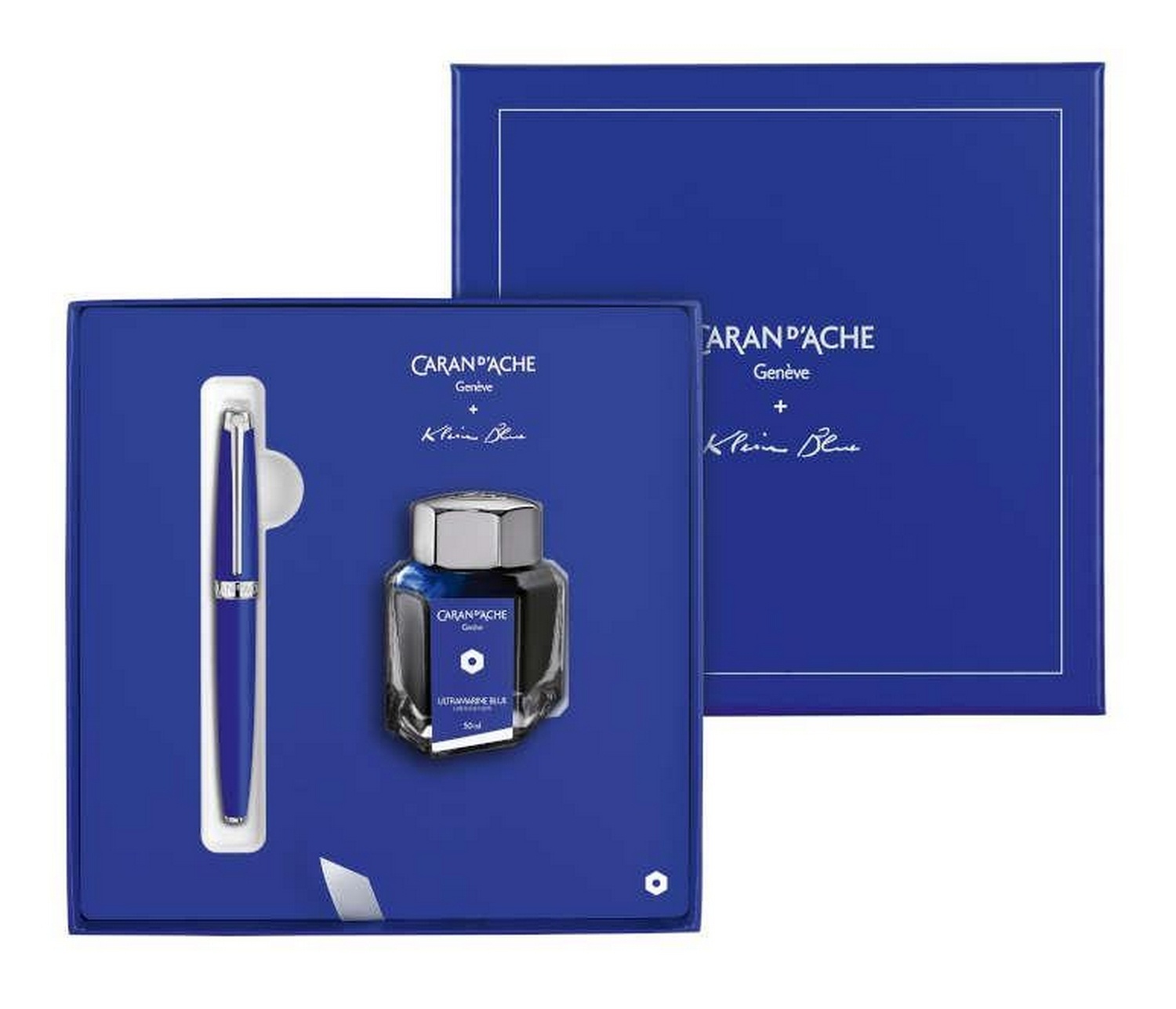 Уникальная коллекция Caran d’Ache + Klein Blue® раскрывает искусство в новом формате. Сочетая опыт увлеченных мастеров в цветопередаче, а уникальные ноу-хау, Дом Caran d’Ache отдаёт дань уважения одному из самых удивительных художников своего поколения: Yves Klein. Всемирно известный благодаря своим монохромным работам, Klein ухватился за синий цвет, а конкретно за его насыщенный ультрамариновый оттенок, «самое совершенное выражение синего цвета». Художник понимает, как раскрыть всю его многогранность, его матовое и светящееся сияние, посредством гениального процесса под названием: International Klein Blue® (IKB). Что тесно связывает Caran d'Ache с Yves Klein, так это разделяемые ими ценности, такие как их увлечение цветом и страсть к чистым и сильным пигментам. Когда дизайнер по цвету встречается с синей бесконечностью, это праздник творчества во всех его формах и на все случаи жизни. Klein использует разнообразные способы выражения своего творчества. Для публикации книги или статьи, украшения своих работ он может писать, как перьевой ручкой, так и шариковой. Чтобы создать новый набросок, Klein использует как цветной карандаш, так и чёрнографитный. Поэтому не менее семи знаковых продуктов были пересмотрены, что способствовало созданию уникальной лимитированной коллекции. Коллекция, в которой красота бесконечно синего ультрамарина сочетается с качеством и креативностью компании Caran d’Ache.