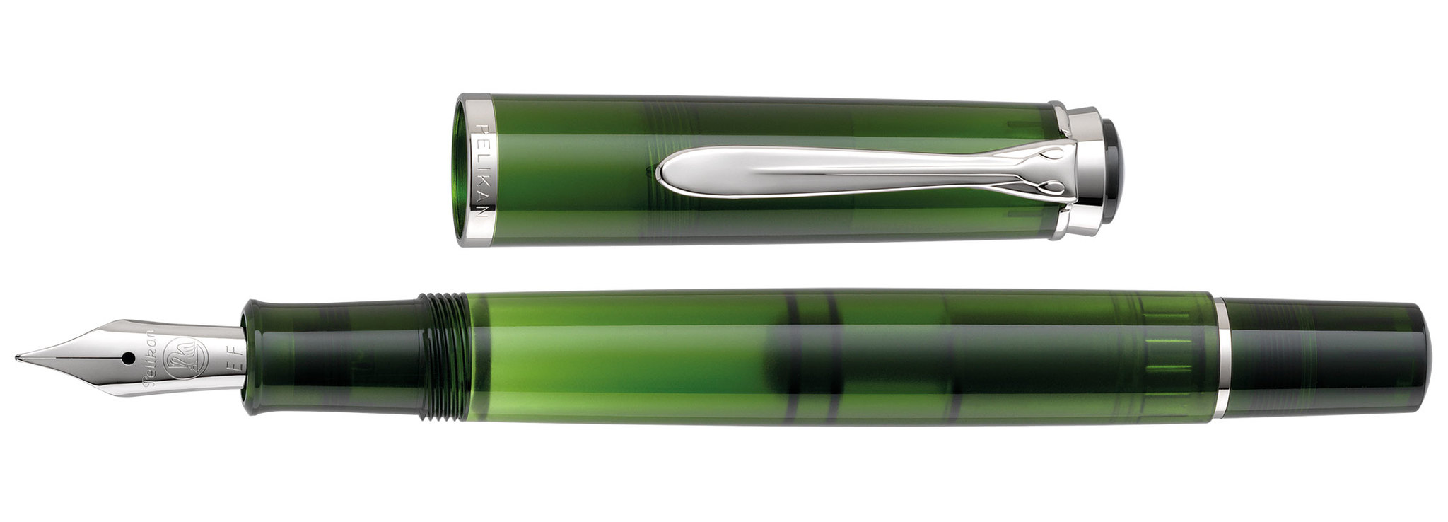 оттенков зеленого цвета непосредственно в корпусе одной ручки. Удивительно. Коллекция Pelikan Classic 205 Olivine Special Edition 2018 выпускается в виде перьевой ручки с дифференциальным поршневым механизмом и шариковой ручки с хорошо-устроенным нажимным механизмом. Перо из нержавеющей стали перьевой ручки M205 тщательно отполировано и блестит сверкающим серебристым цветом. В зависимости от индивидуального почерка и предпочтений, можно выбрать размер пера EF, F, M и B.