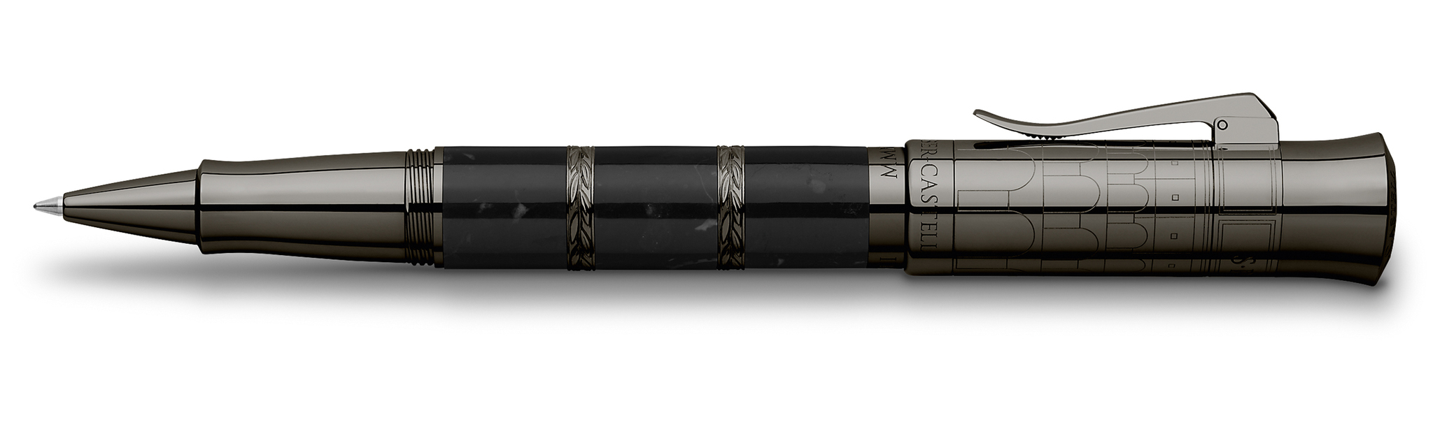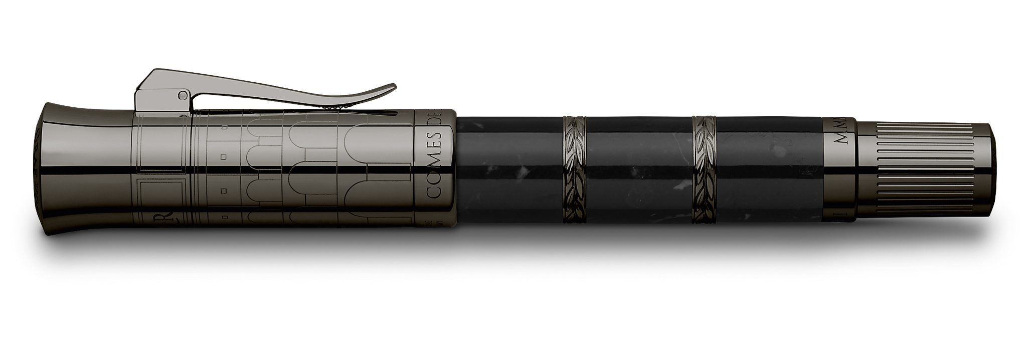 Отделка инструмента: | PVD-покрытие цвета антрацит; 2 кольца с лавровыми венками на корпусе между мраморными сегментами; колпачок украшен гравюрой Колизея и миниатюрной римской монетой с изображением головы Цезаря на торце колпочка |