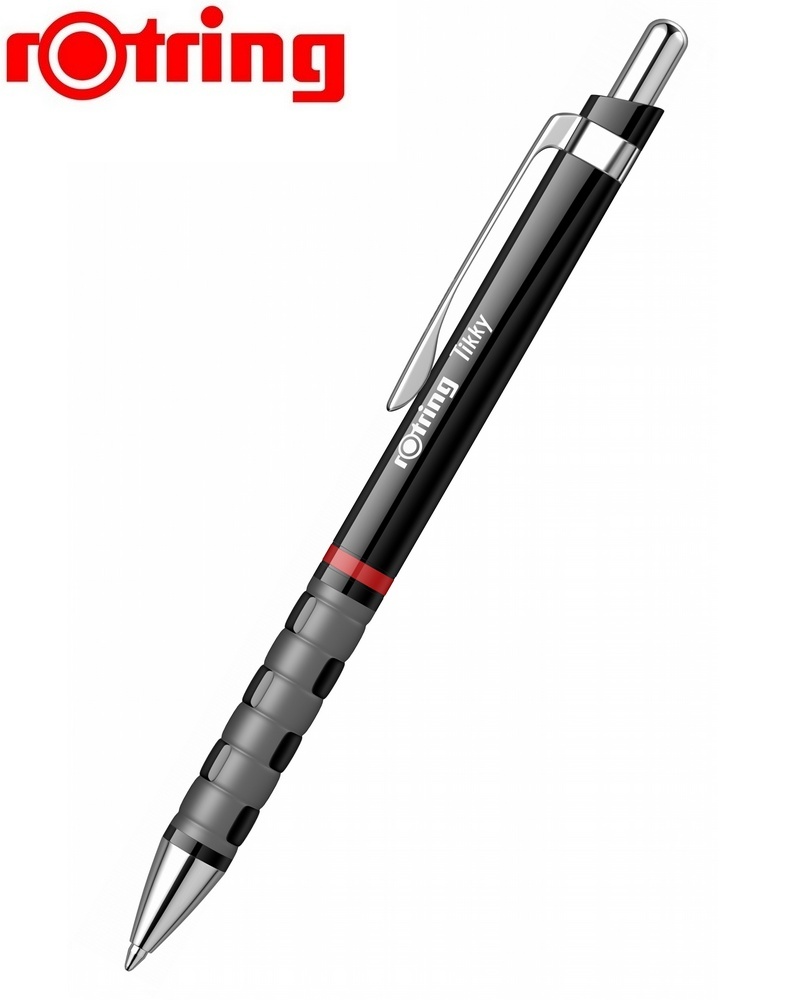 Описание: Шариковая ручка rotring Tikky. Легкая автоматическая шариковая ручка с мягкой прорезиненной зоной захвата. Трехгранный корпус для удобства. Сменный стержень (арт.S0195360-синий, S0195390-черный). Черный цвет корпуса. Ширина линии средняя, цвет чернил – синий.