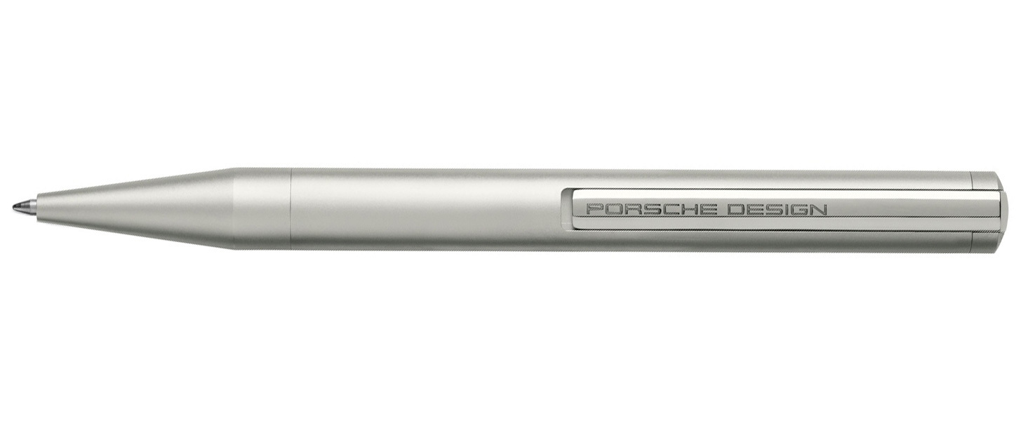 Ручка шариковая Pelikan Porsche Design P`3160 One Piece - пуристический пишущий инструмент, корпус которого выполнен из алюминия с пескоструйной обработкой. Одним из основных моментов является функциональный механизм связанный с клипом. Нажимая верхнюю часть зажима, механизм отпускается, и клип перемещается вперед, защелкивается на месте, и в то же время появляется стержень. Поэтому клип полностью интегрирован в корпус. Нажимая зажим на цилиндр, зажим снова поднимается, и стержень исчезает. Блестящий клип из нержавеющей стали украшает логотип Porsche Design. На торце ручки выгравирован значок PD.