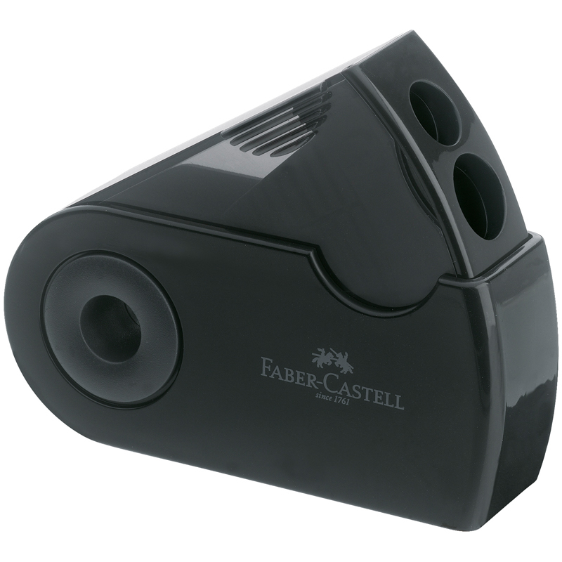 Точилка пластиковая Faber-Castell "Sleeve", 2 отверстия, контейнер, черная (182700)