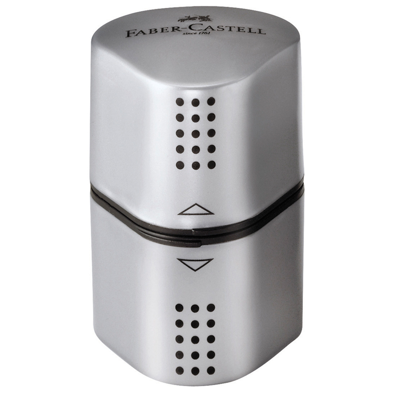 Точилка пластиковая Faber-Castell "Trio Grip 2001", 3 отверстия, 2 контейнера, серебряная (183800)